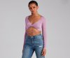 Flaunt your fashionista status in this cute wrap crop top featuring long sleeves, a plunge V-neck, and a twist front with a wrap-tie closure. Composed of slinky knit fabric with a moderate stretch. Complete the look in